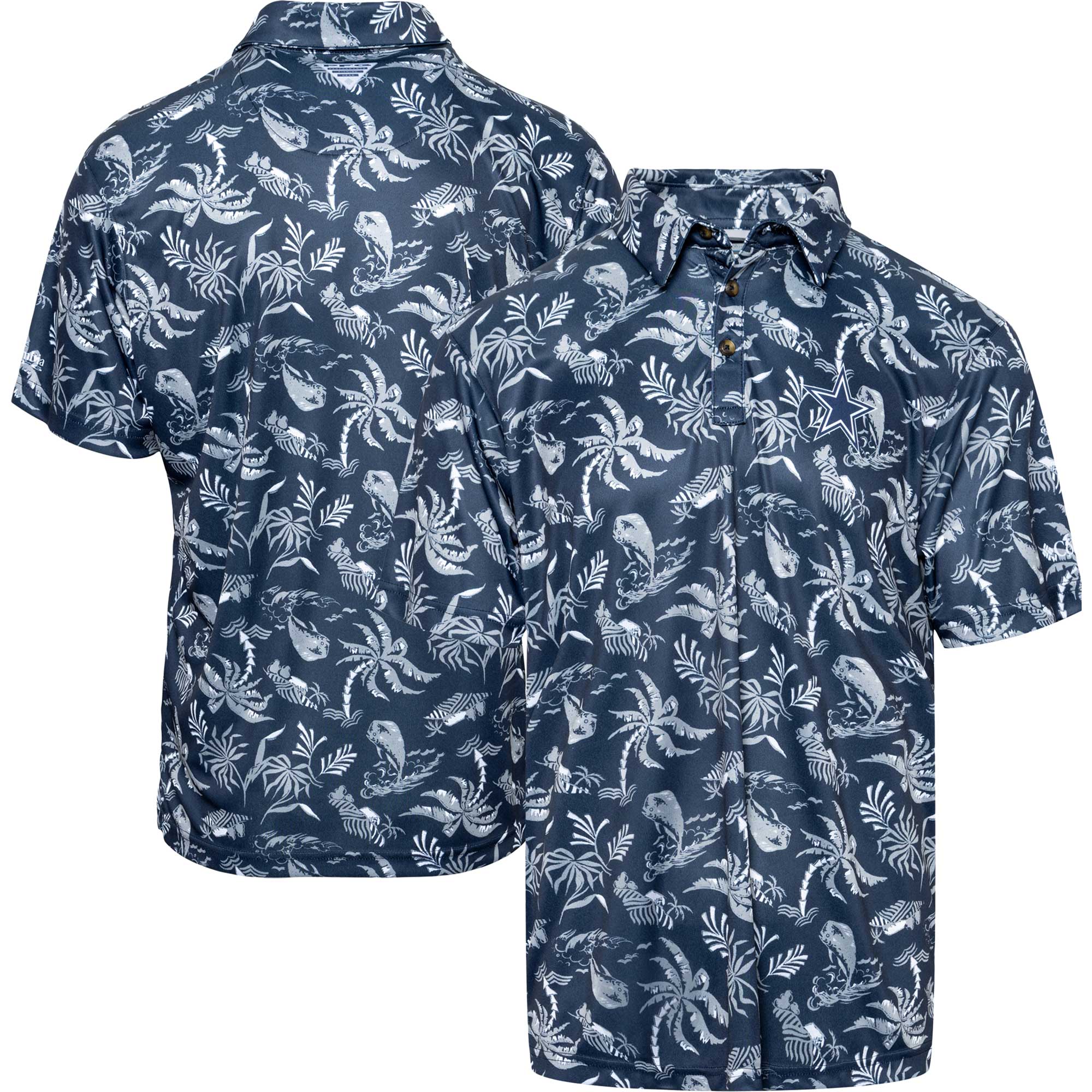 Men’s Columbia Navy Dallas Cowboys Super Terminal Tackle Omni-Shade Polo