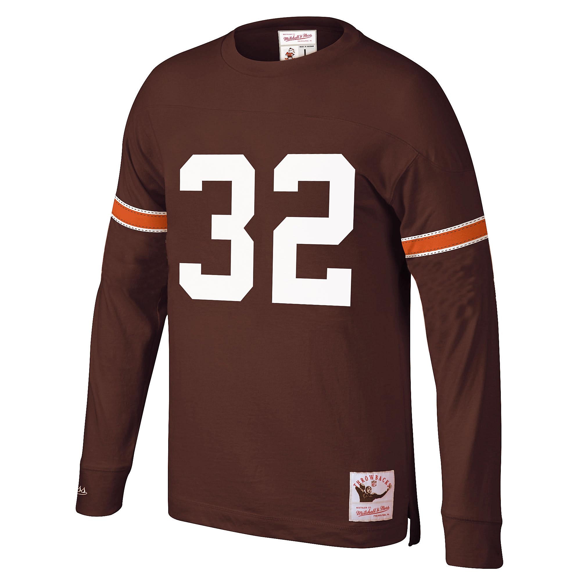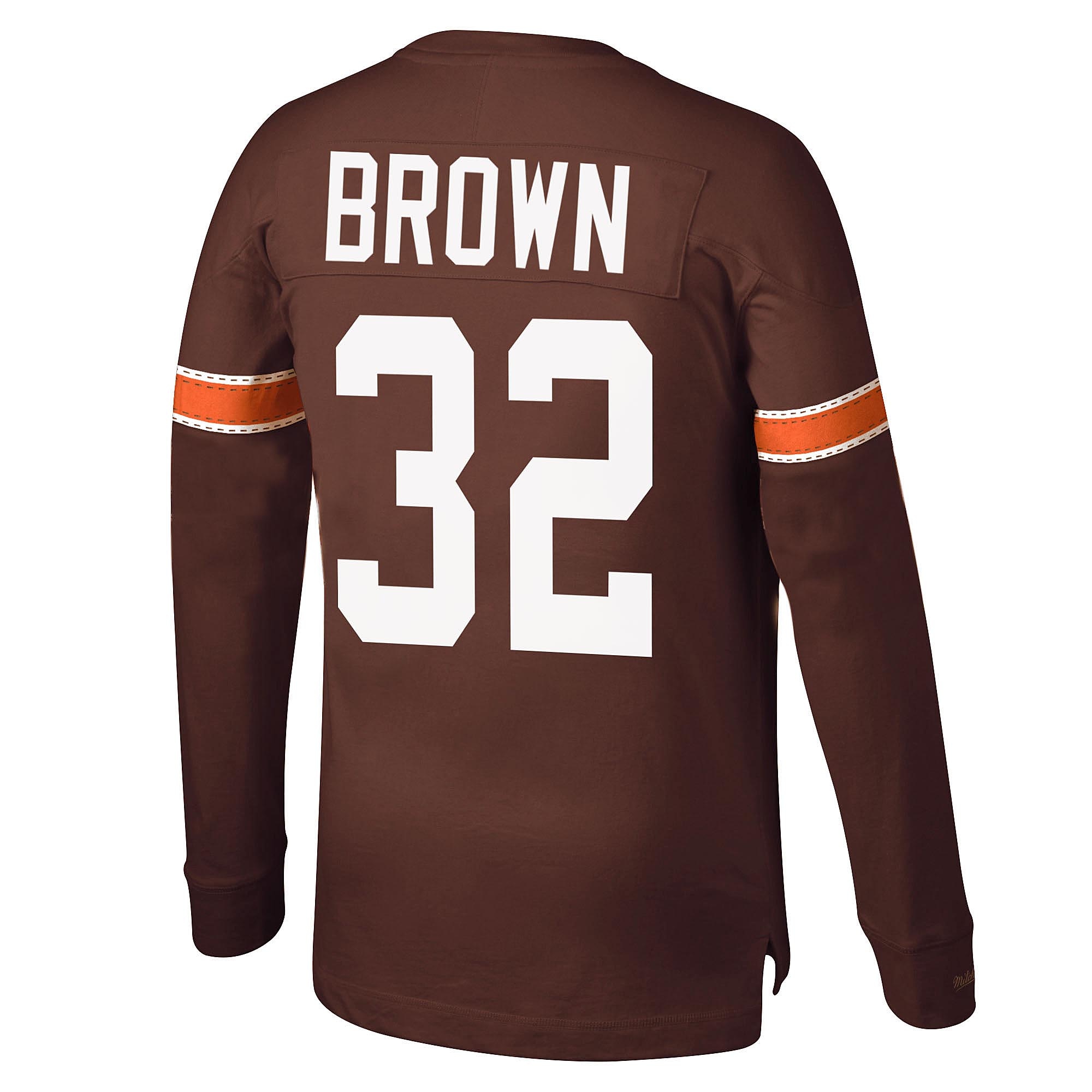Men’s Mitchell & Ness Jim Brown Brown Cleveland Browns 1965 Retired Player Name & Number Long Sleeve T-Shirt